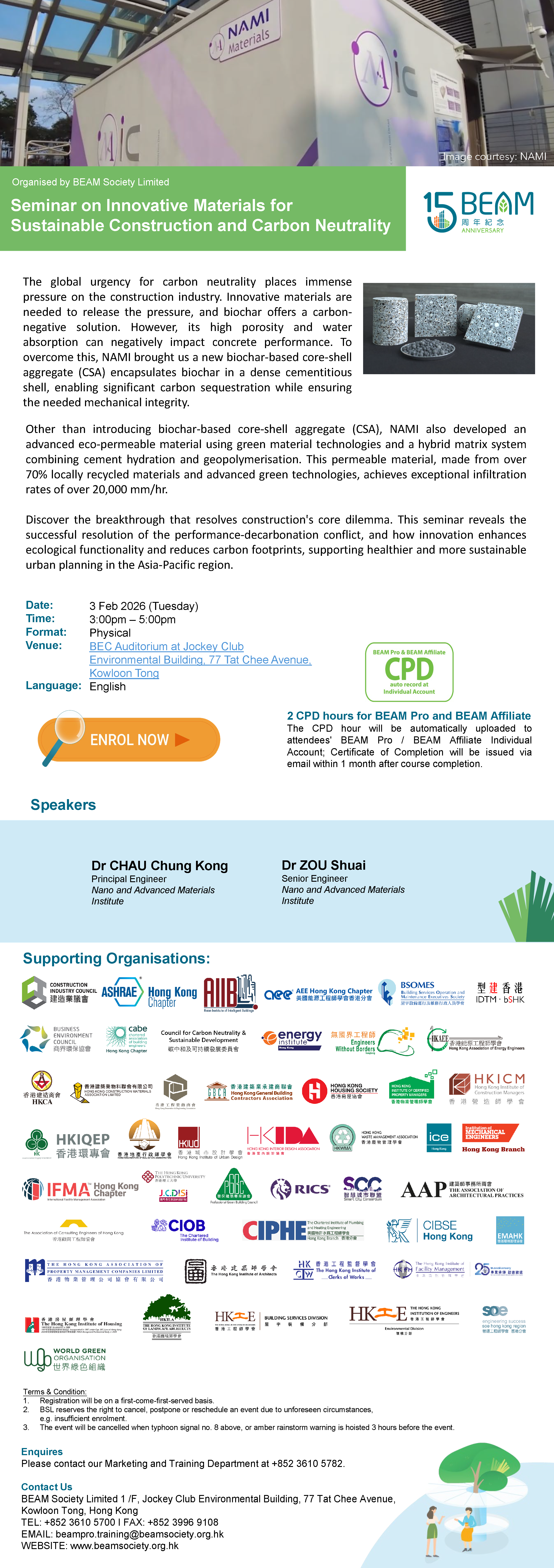 CPD Training - Seminar on Innovative Materials for Sustainable Construction and Carbon Neutrality